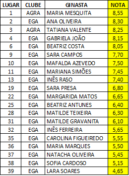 No escalão de minis em Movimentos Livres a Madalena Gomes ficou a uma décima do pódio, ocupando assim o quarto lugar na classificação geral com 6.05 pontos. A Leonor Calado ocupou a setima posição com 5.55.